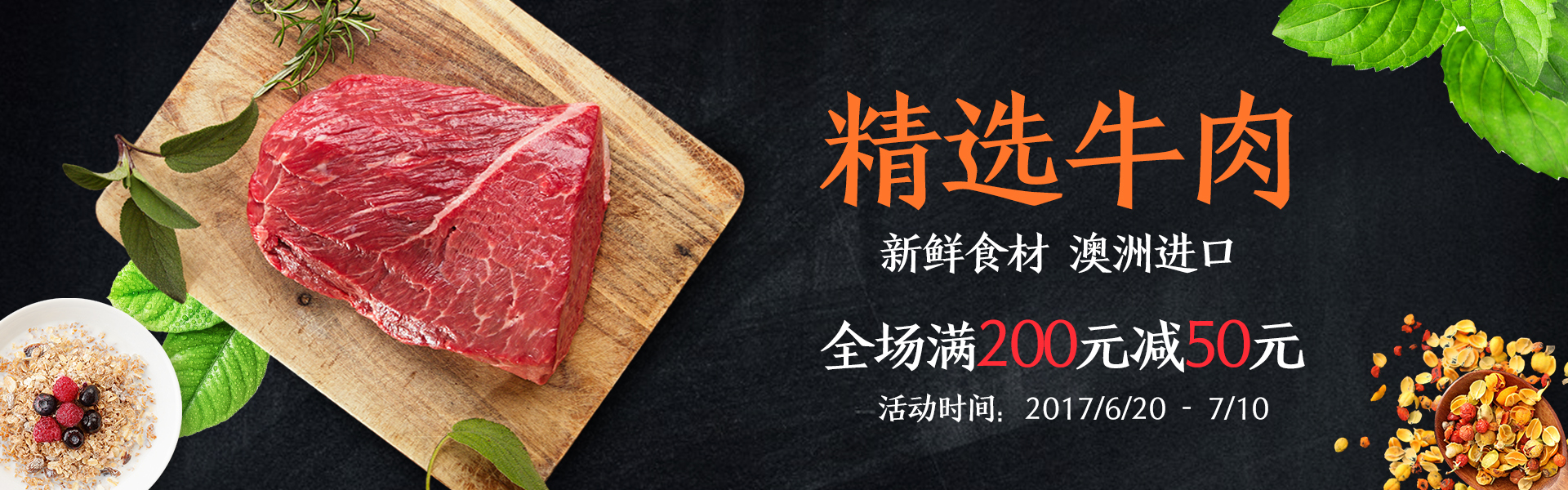 进口牛排banner图设计,天猫99盛典狂欢图