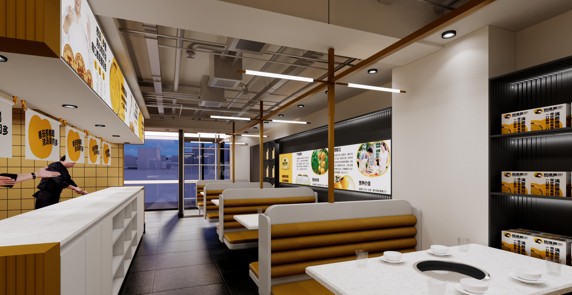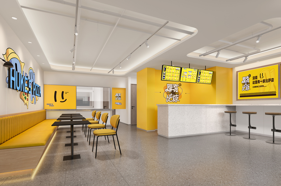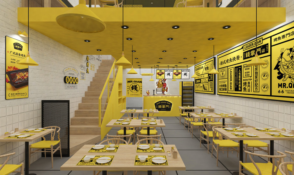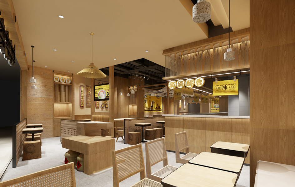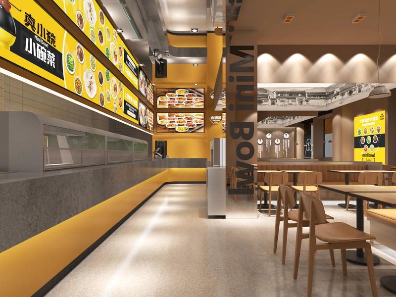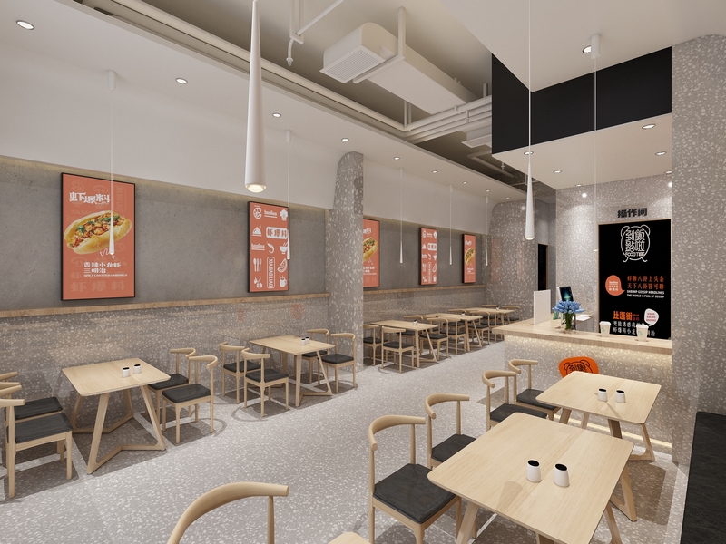 快餐厅设计 熊猫啵啵鱼米线粉丝店装修 众派思设计