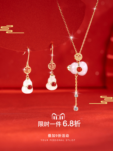 国潮国风大红色和田玉项链吊坠耳饰珠宝