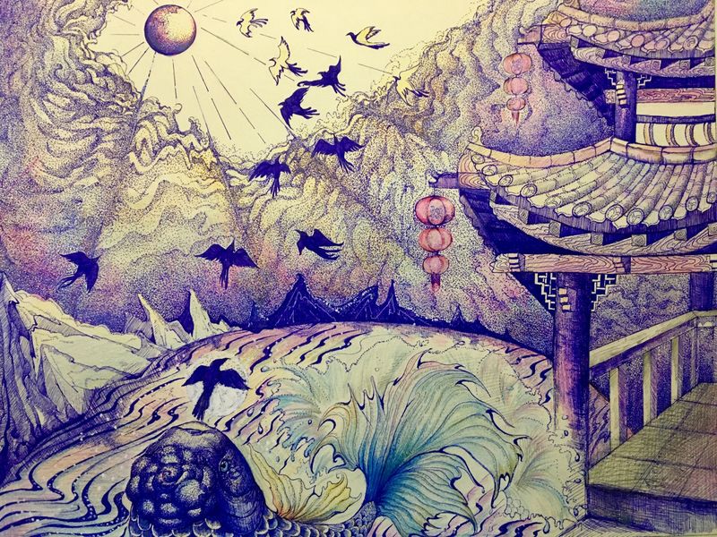 <蜂巢 Beehive> acrylic ink on canvas 107cm x210cm
