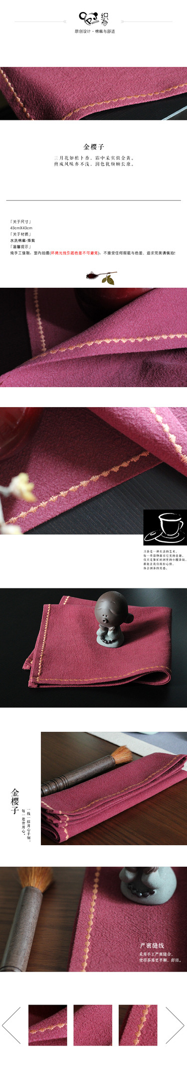 熊猫织物【金樱子】刺绣方巾
