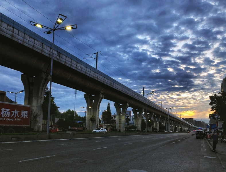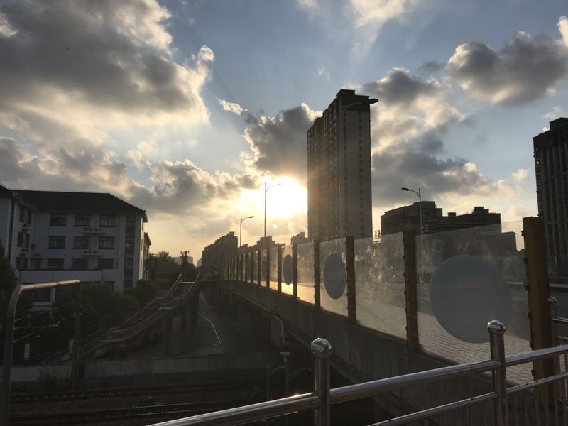 在地铁站等孩他娘,等的时间看到落日还不错就拍了