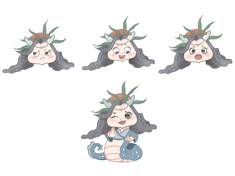 原创快乐蛇IP卡通形象插画设计 蛇年新年插画生肖IP