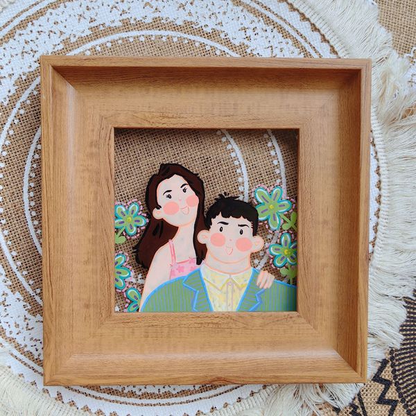 水彩手绘卡通情侣装饰画