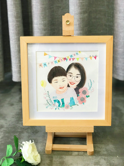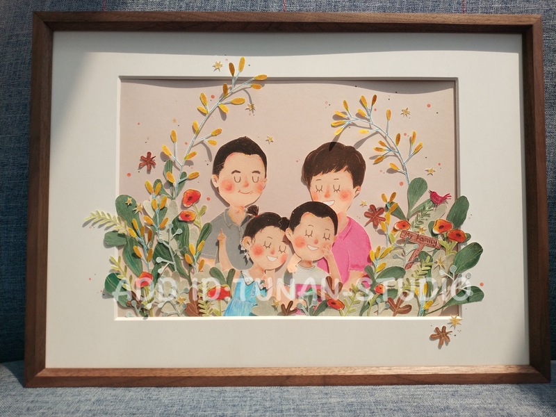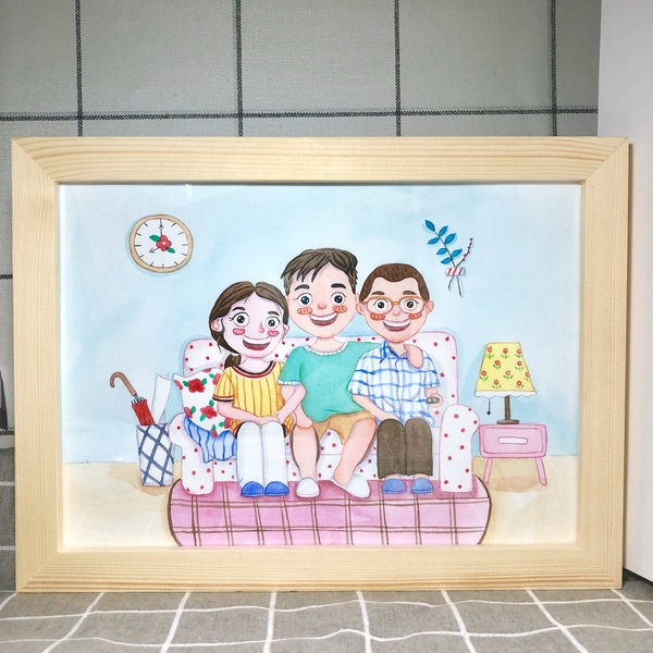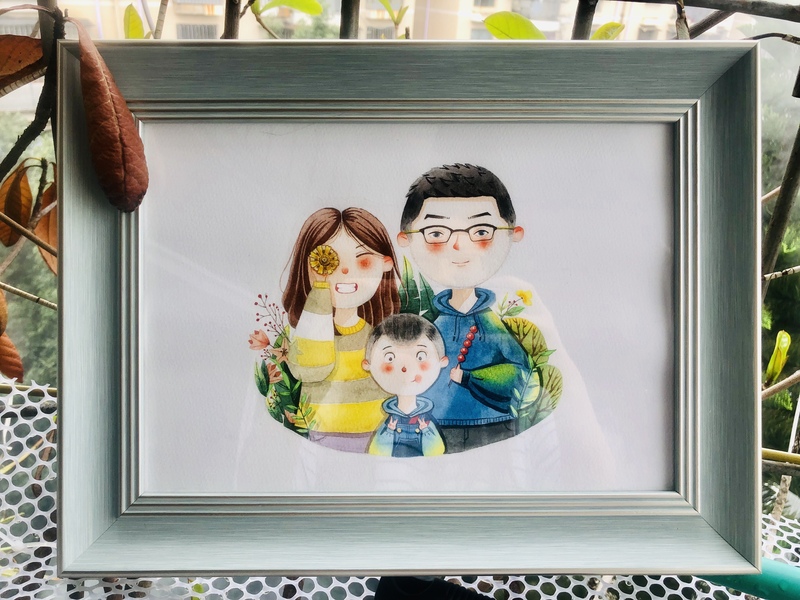 亲子照全家福手绘