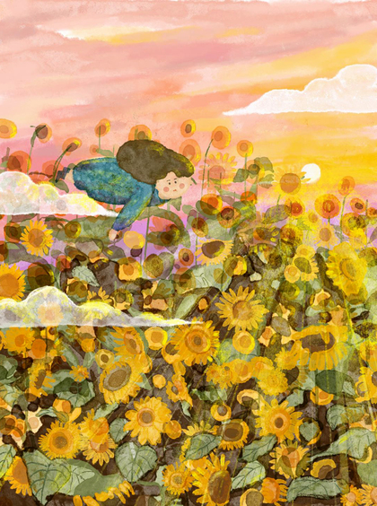 向日葵地里捉迷藏~原创插画分享