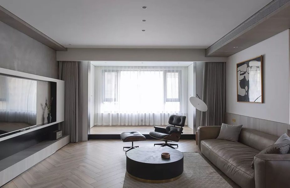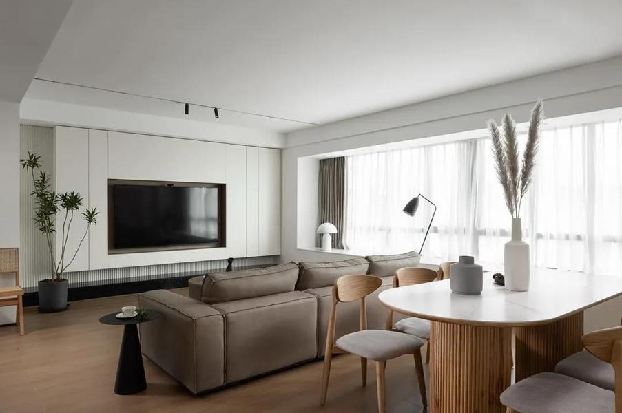 135㎡现代简约风格新房装修,客厅飘窗清净自然