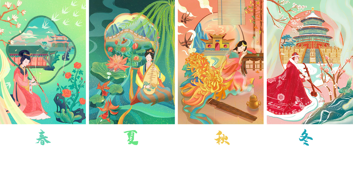 原创国潮古风人物 |果酒包装|蜜桃 青梅 荔枝|美食插画