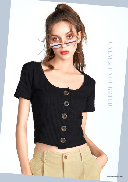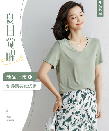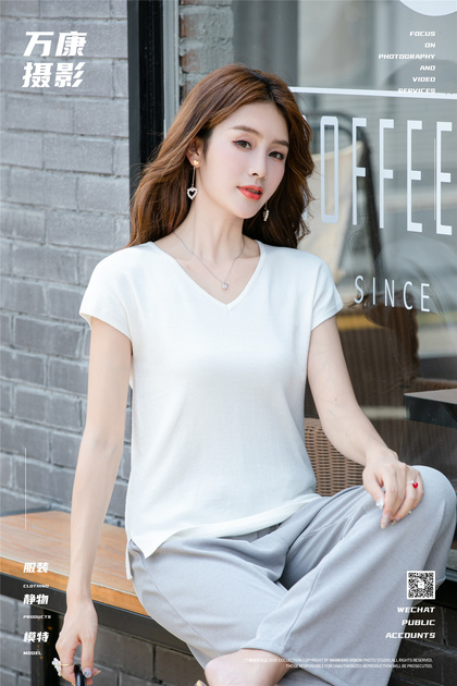模特小咪 短袖t恤拍照 短款上衣拍摄