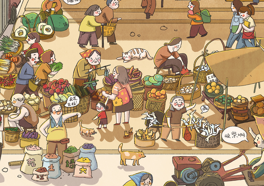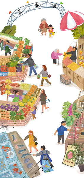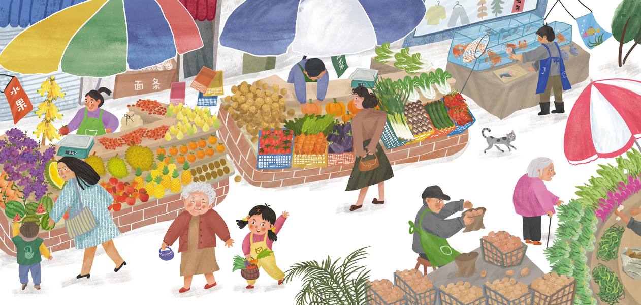 南京康轩/绘本杂志插图/菜市场