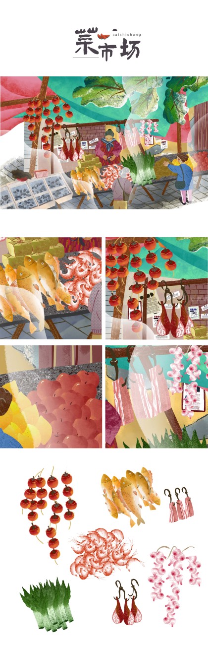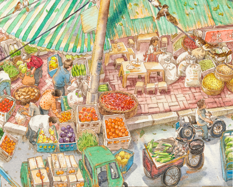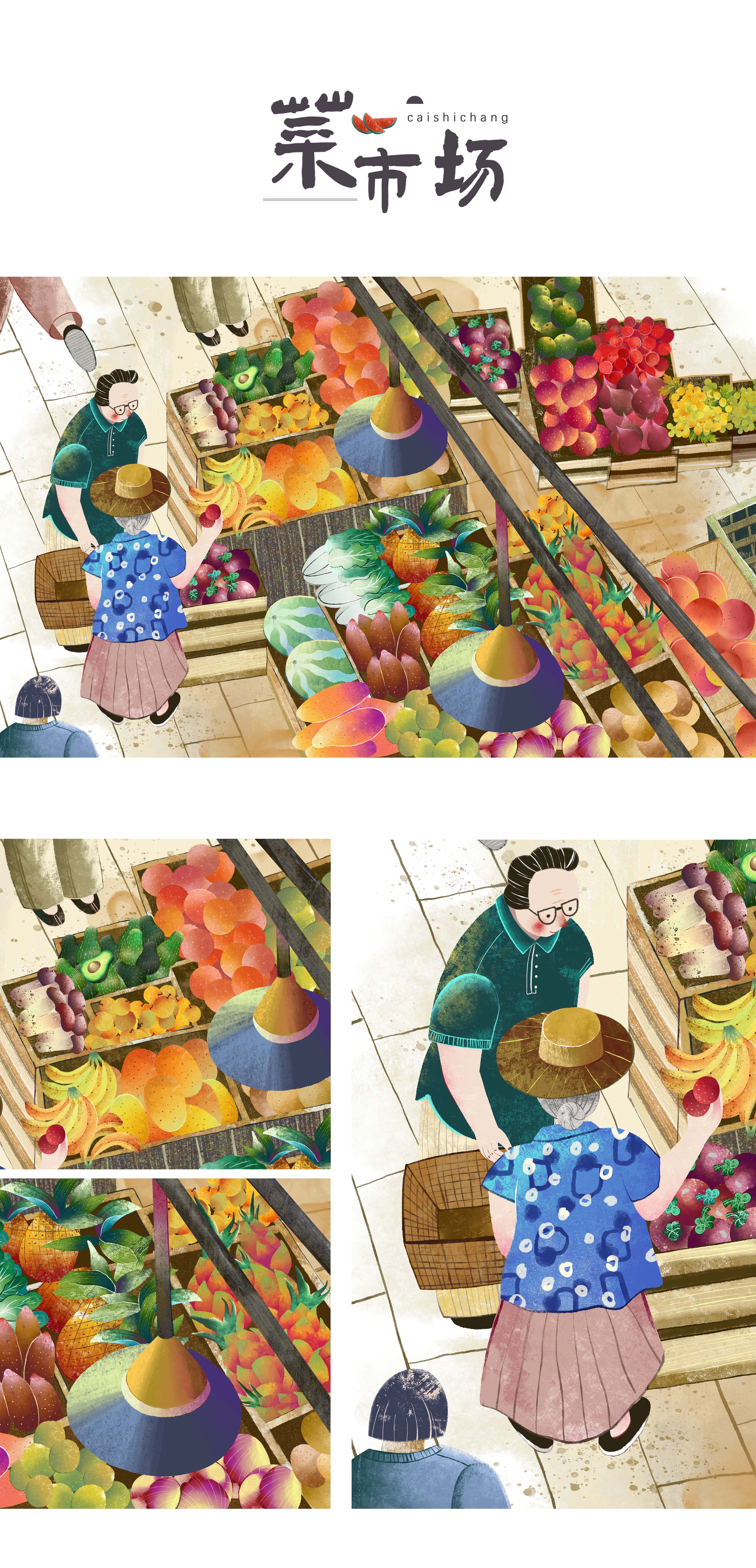 系列插画|太喜欢菜市场啦~