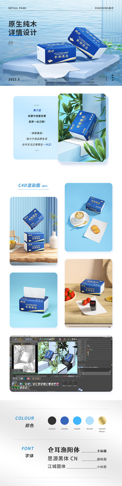 么蓝生活洗脸巾案例——包装设计、产品渲染