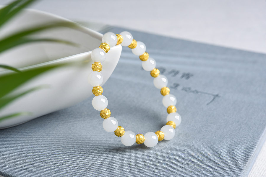 足金和田白玉手链