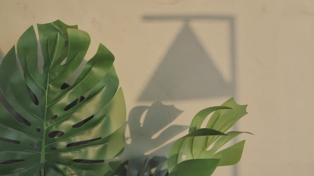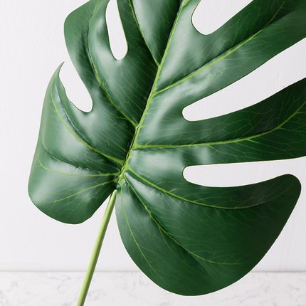 ins风格北欧色彩玻璃瓶插绿色叶子植物写实