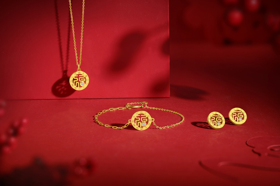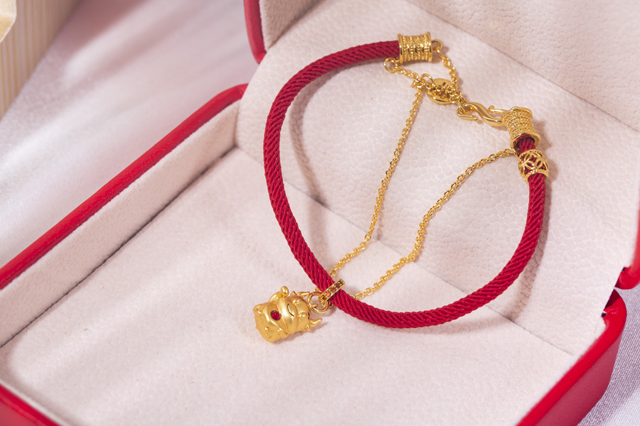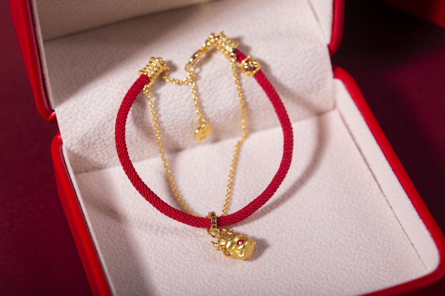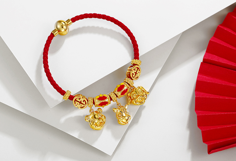 电商首饰拍摄 首饰组合 红绳手链 黄金首饰 喜庆饰品