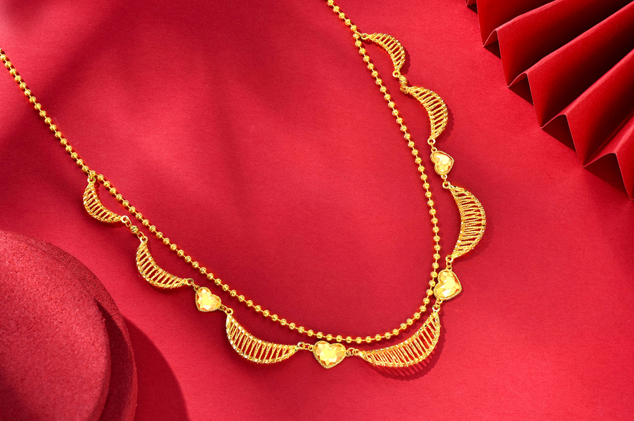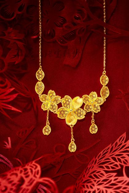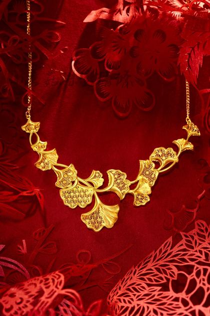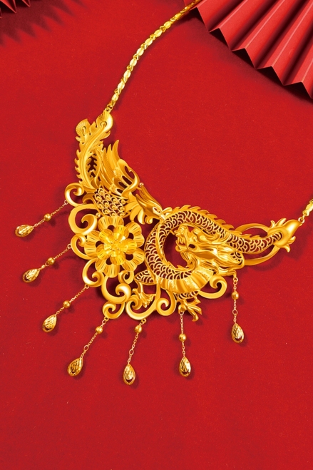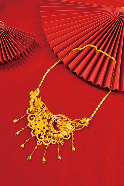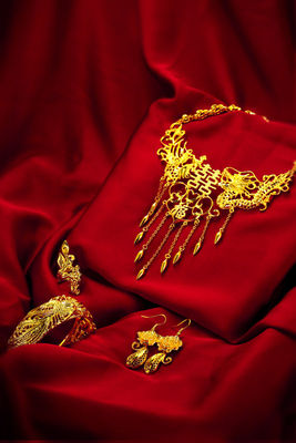 红底 中国金 中国红 婚庆饰品 黄金饰品 项链
