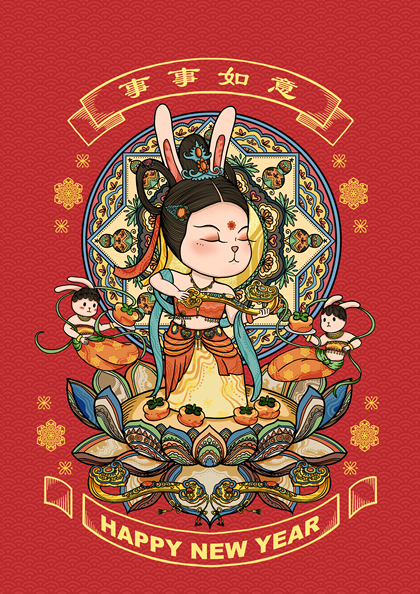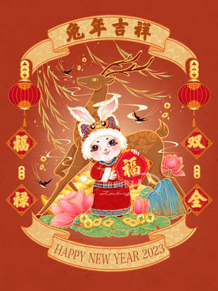 2023遇兔呈祥兔年插画设计 春联红包等文创产品设计