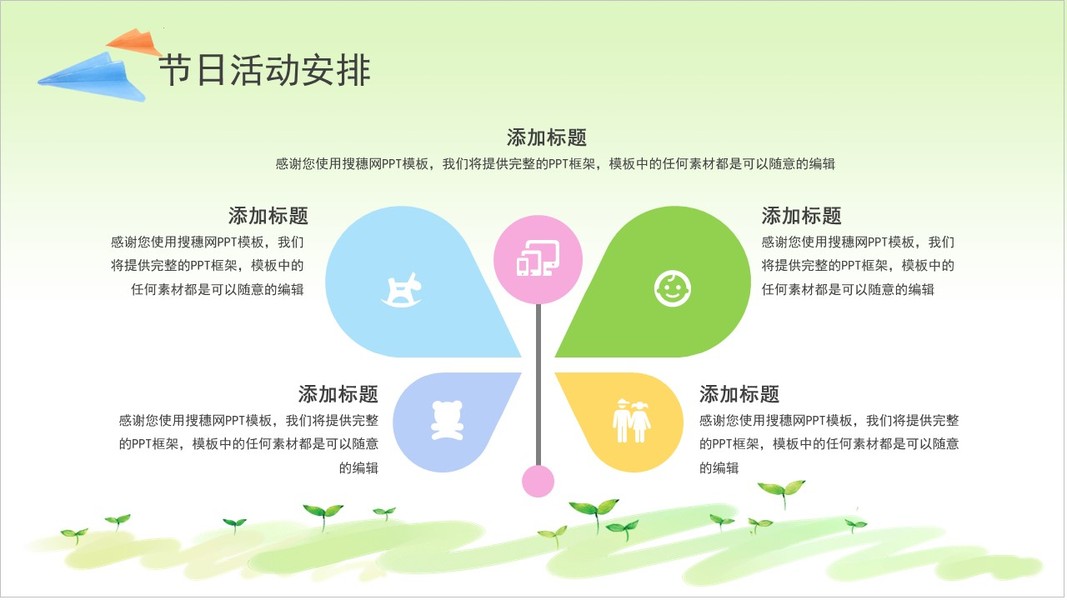小清新多彩卡通风快乐六一儿童节PPT模板