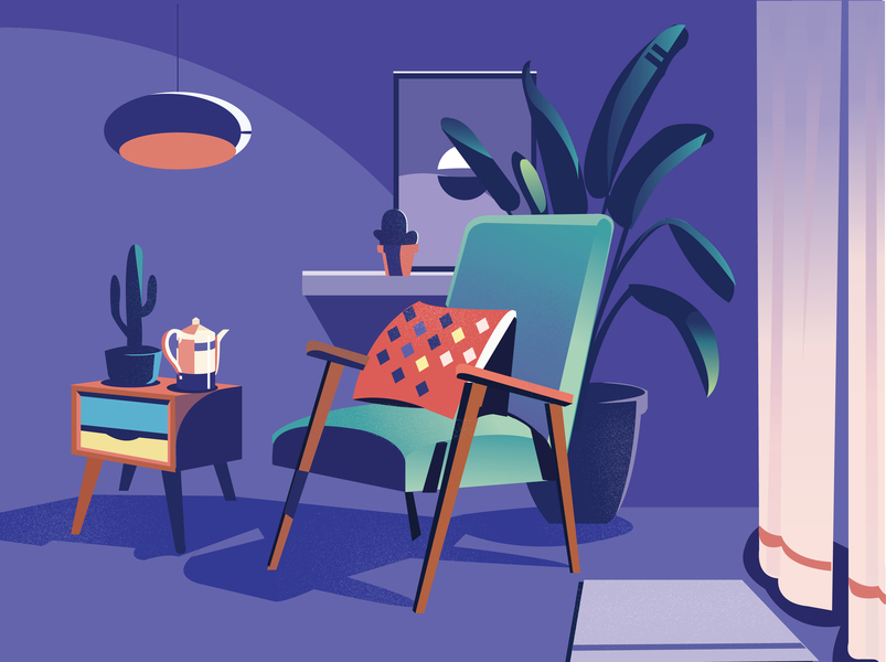 唯美温馨室内场景插画