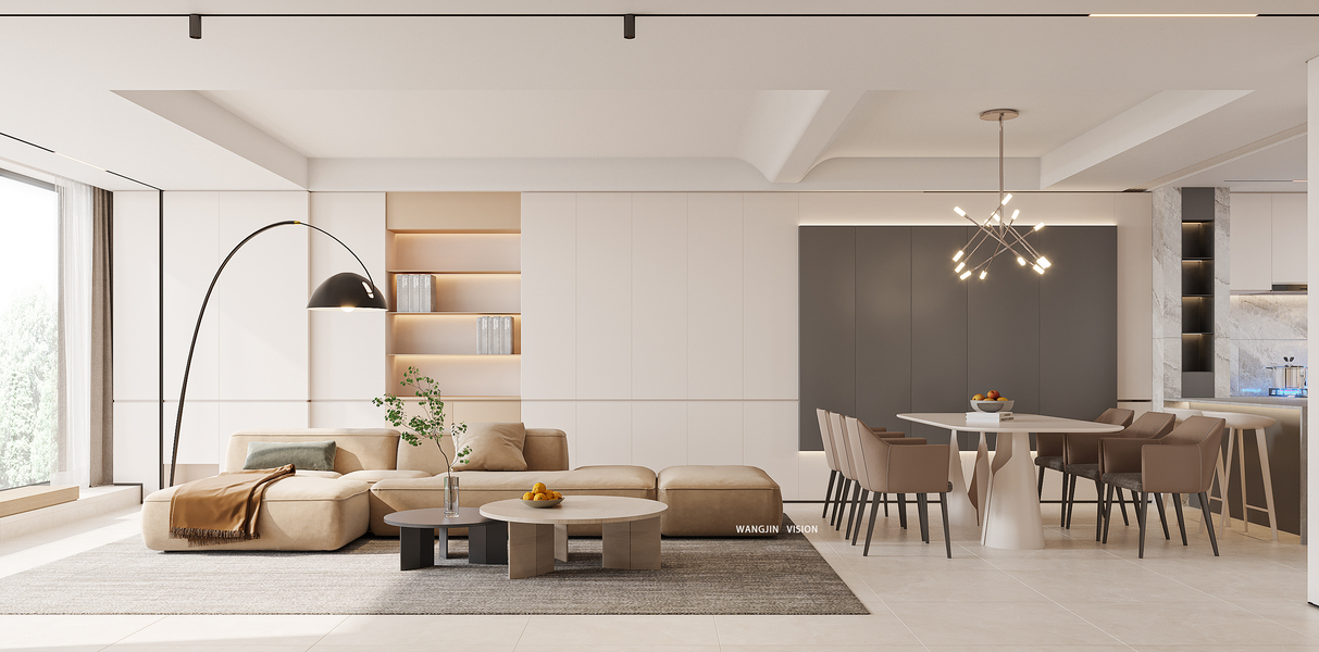 奶油风格客餐厅效果图