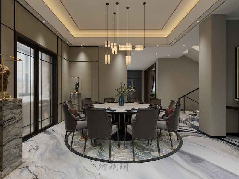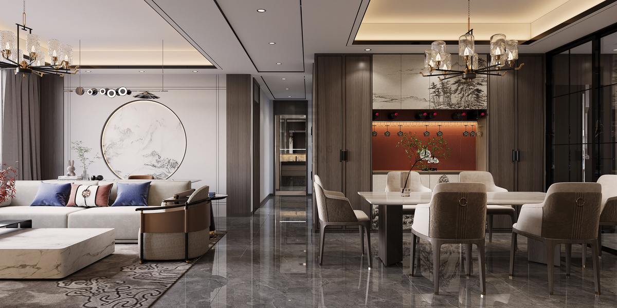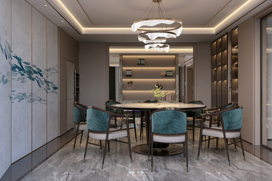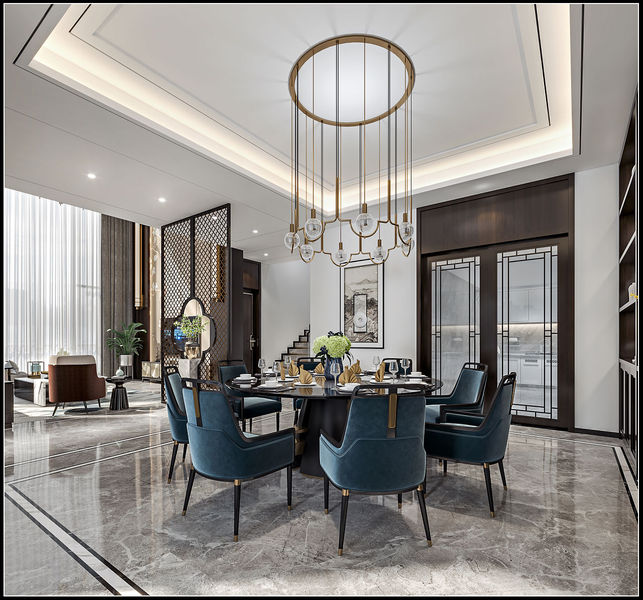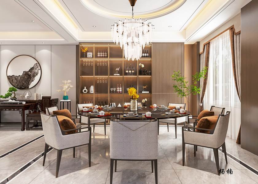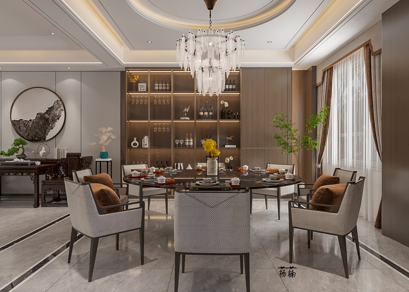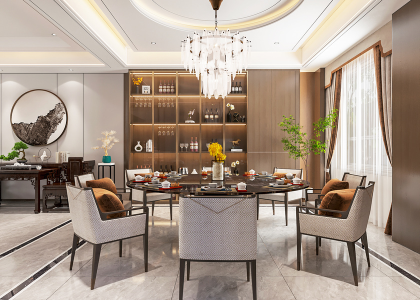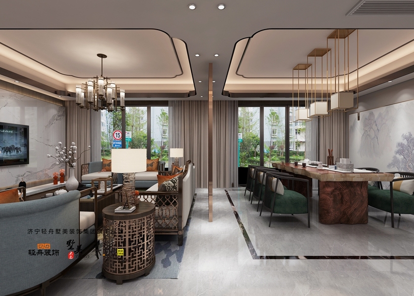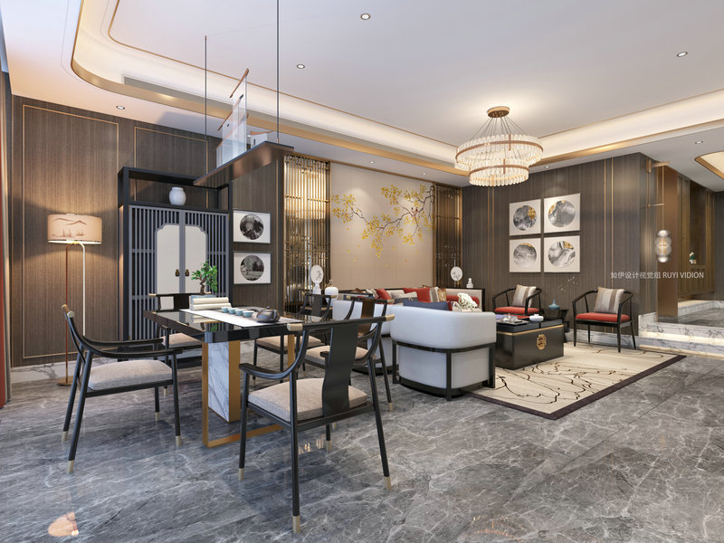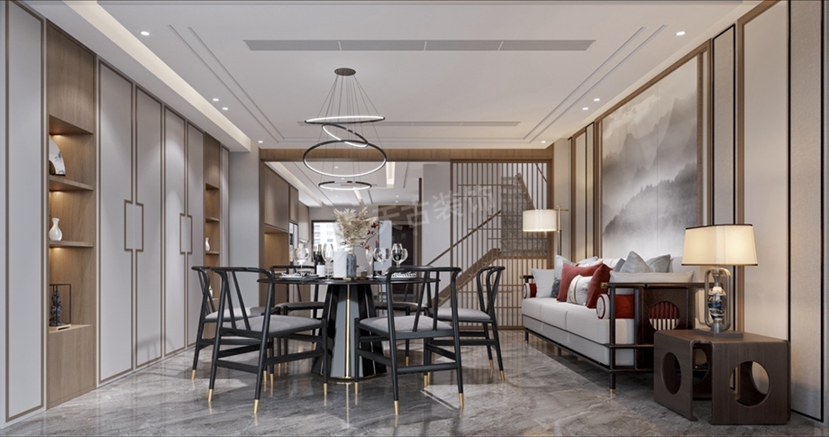 重庆远洋高尔夫别墅装修案例,新中式风格设计效果图