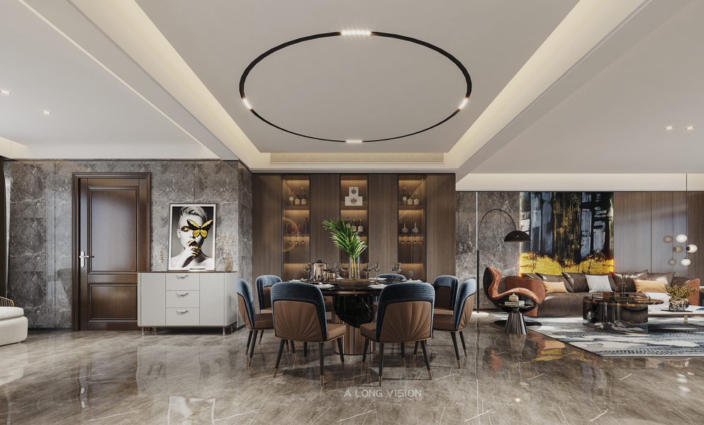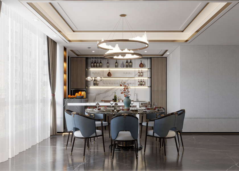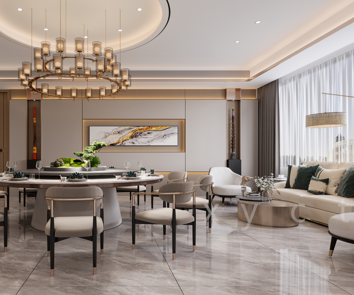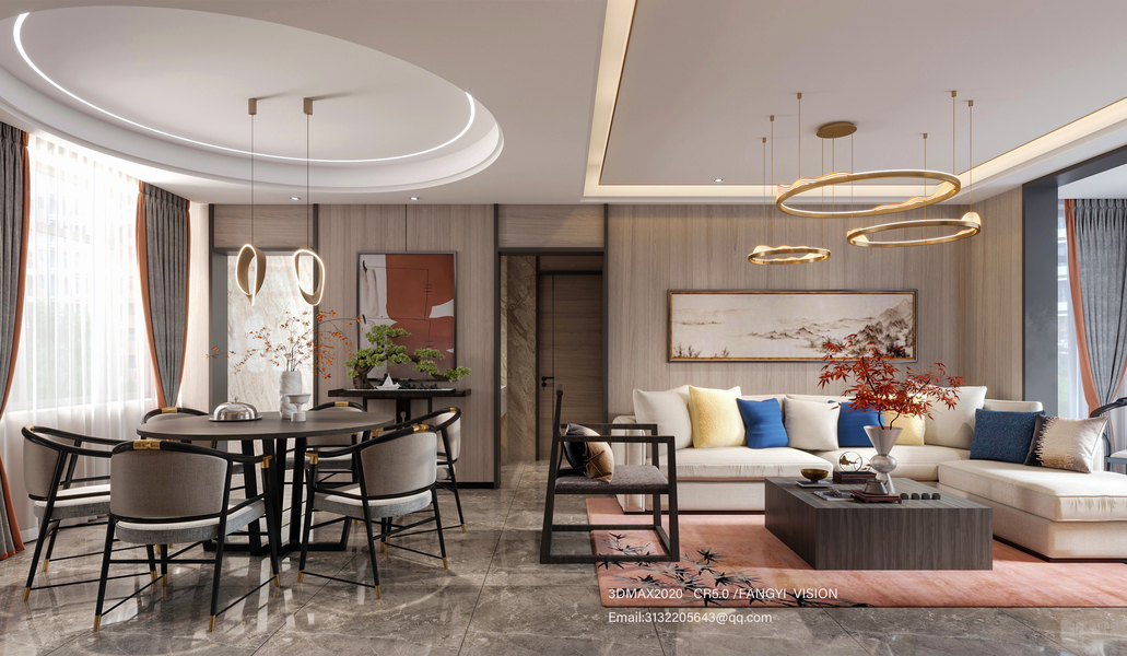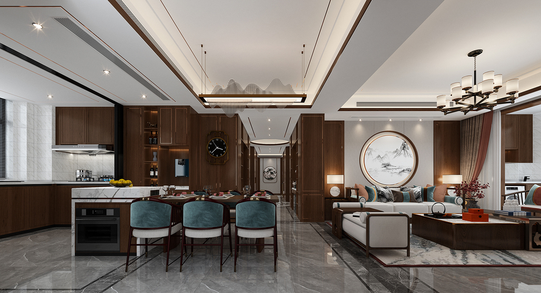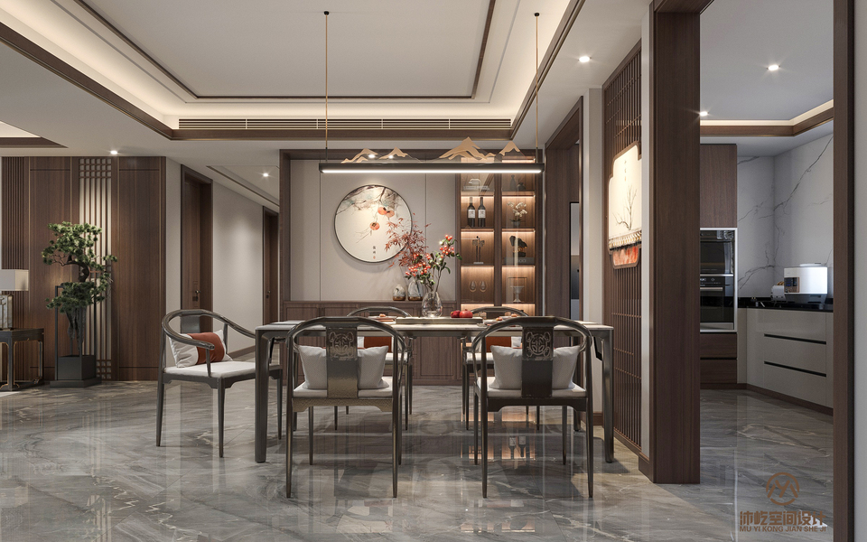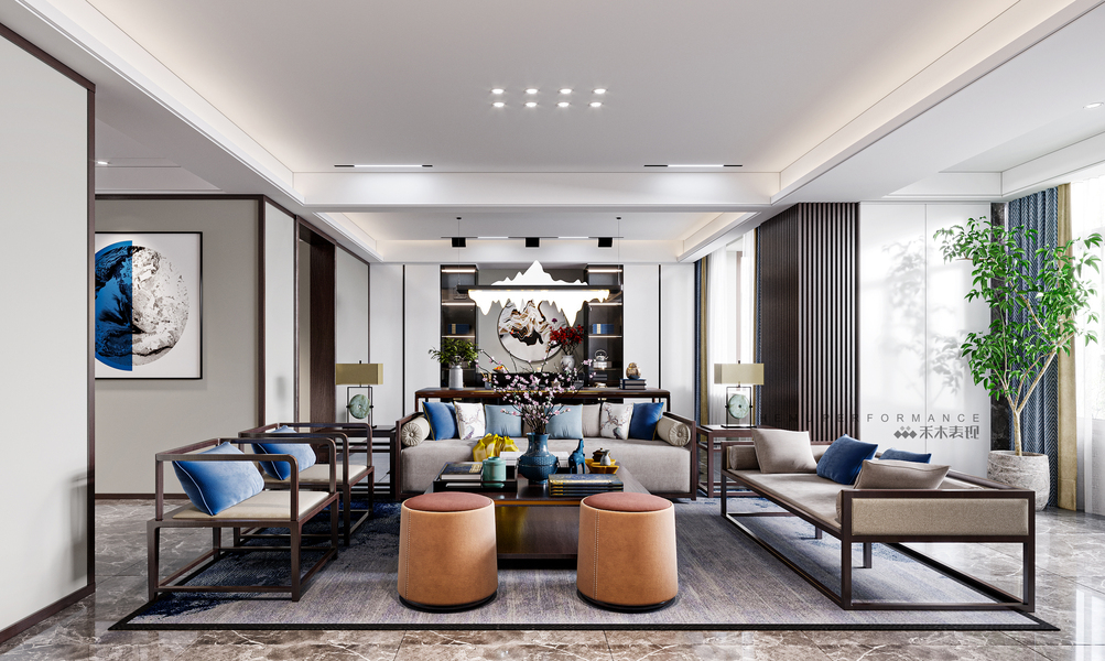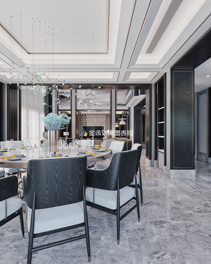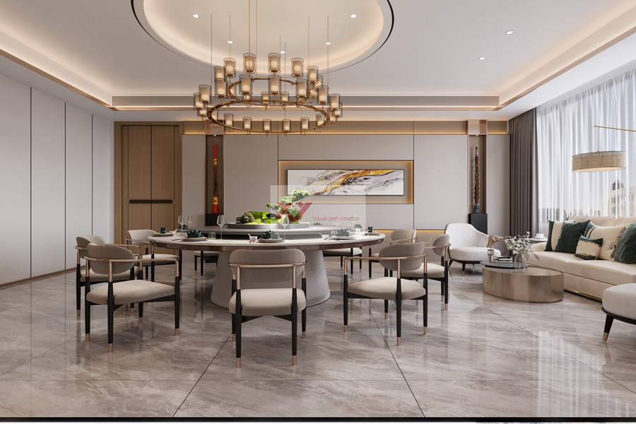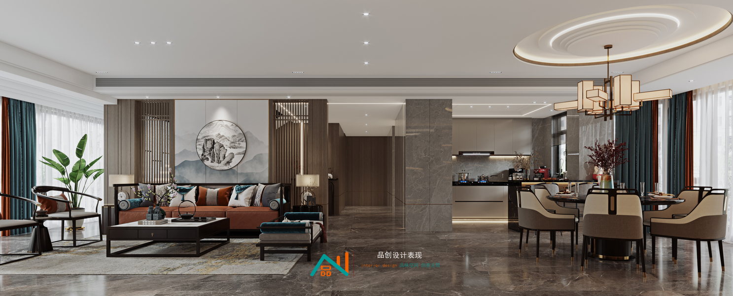 重庆远洋高尔夫别墅装修案例,新中式风格设计效果图
