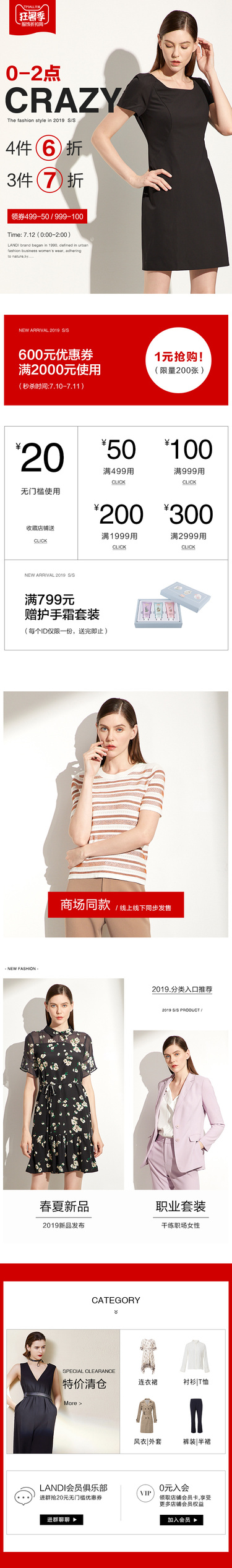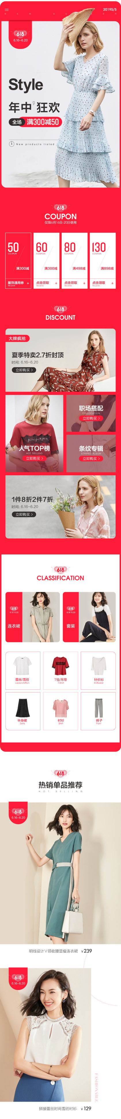 618年中大促返场手机移动端女装活动海报页面设计排版