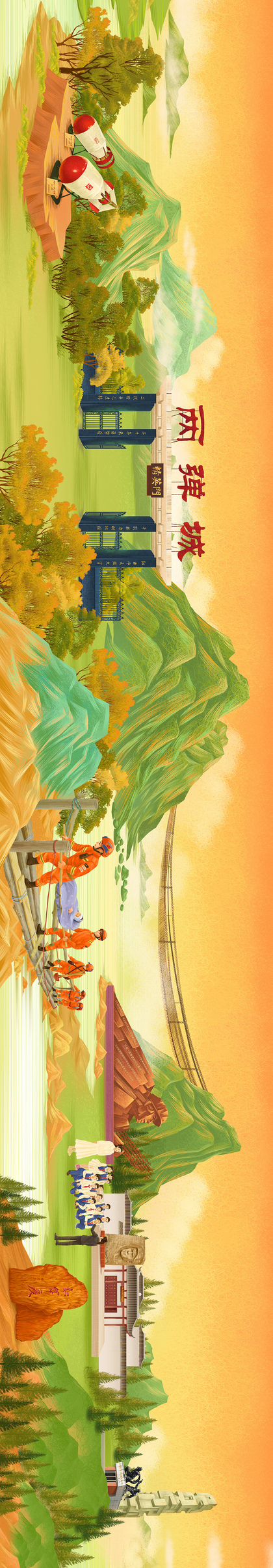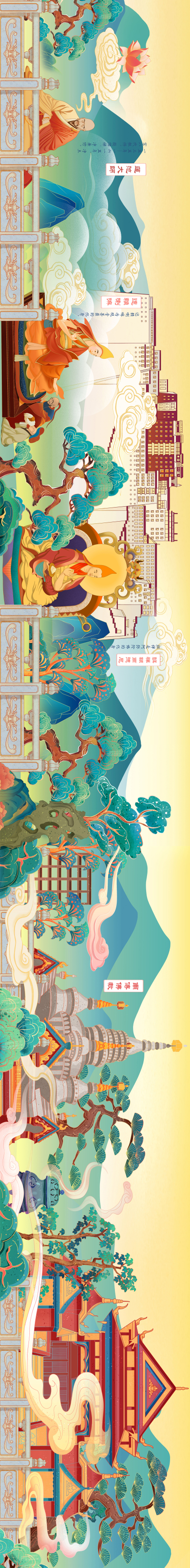 山西景点建筑场景插画(长卷)