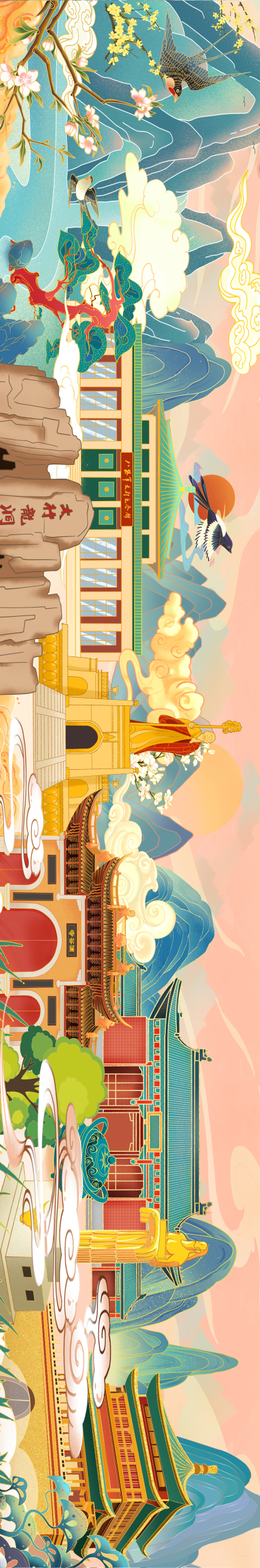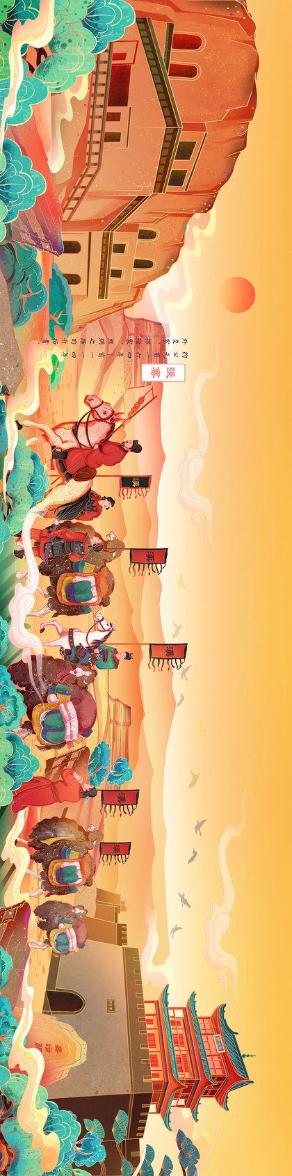 山西景点建筑场景插画(长卷)