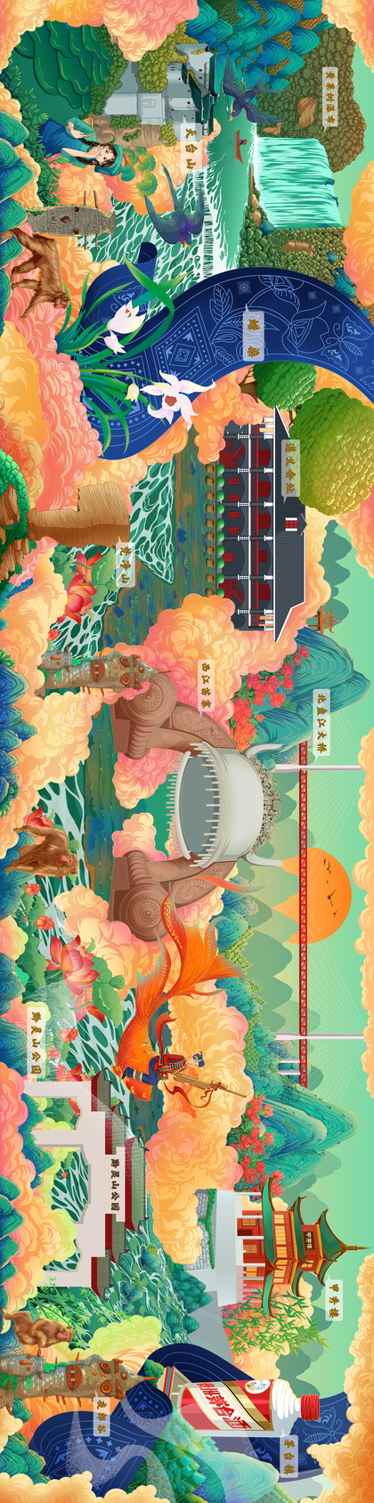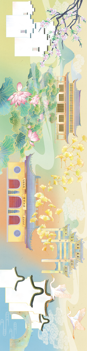 汉口银行插画长卷-各城市卡面