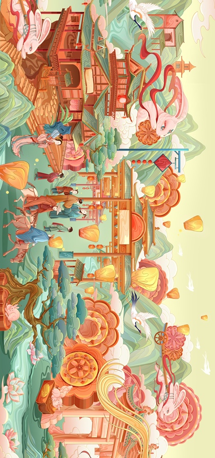 中秋节插画 | 长卷《中秋月下图》上卷