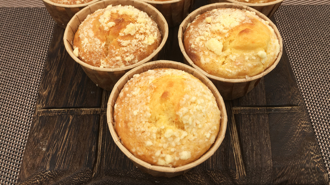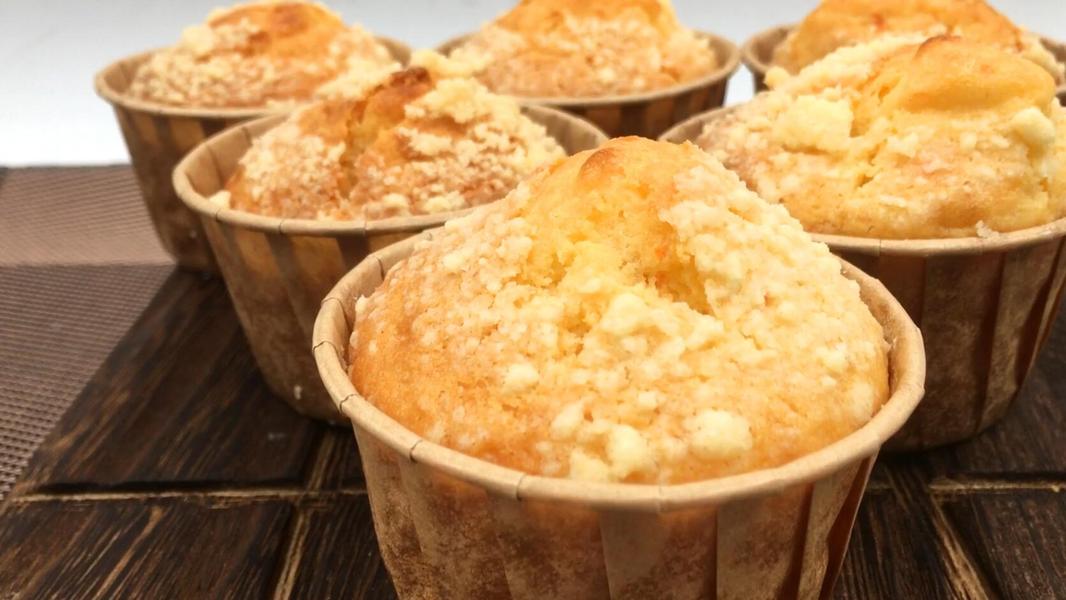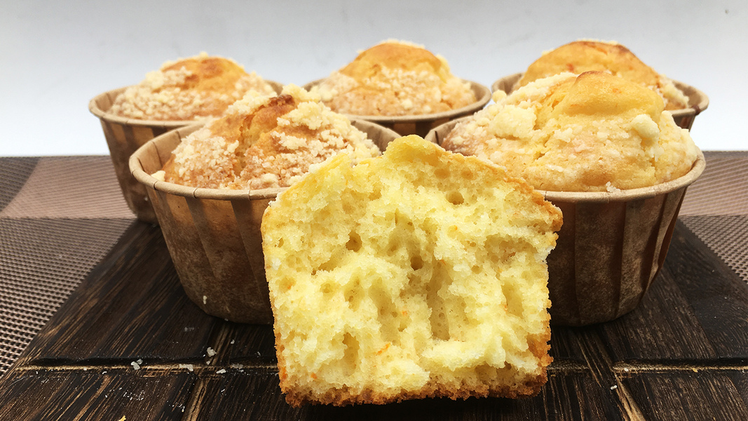 橙香酥粒麦芬,酥粒脆香可口,清新橙皮橙汁。