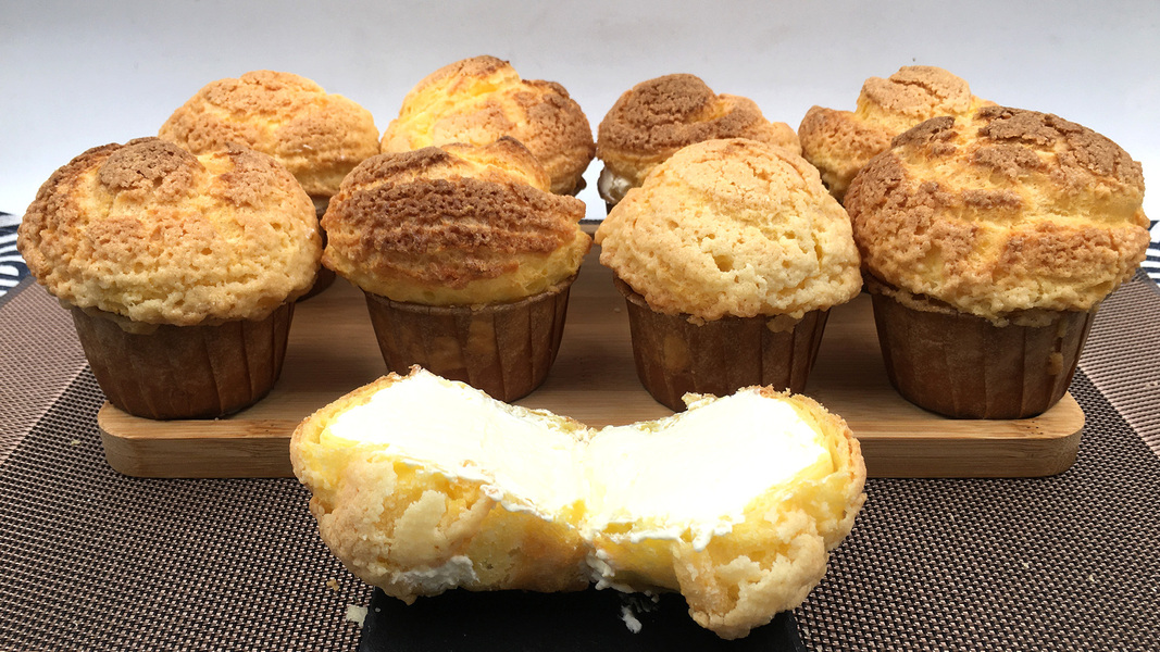 纸杯酥皮泡芙,懒人酥皮做法,外壳酥脆,甜蜜奶油。