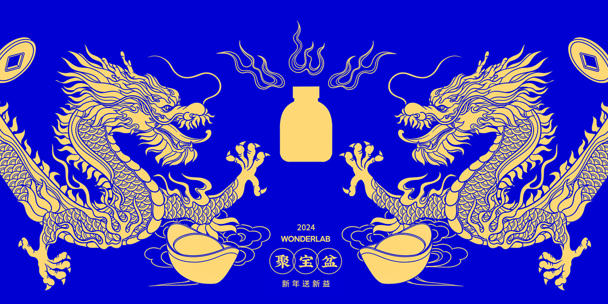 【双龙戏珠】万益蓝聚宝盆礼盒插画设计