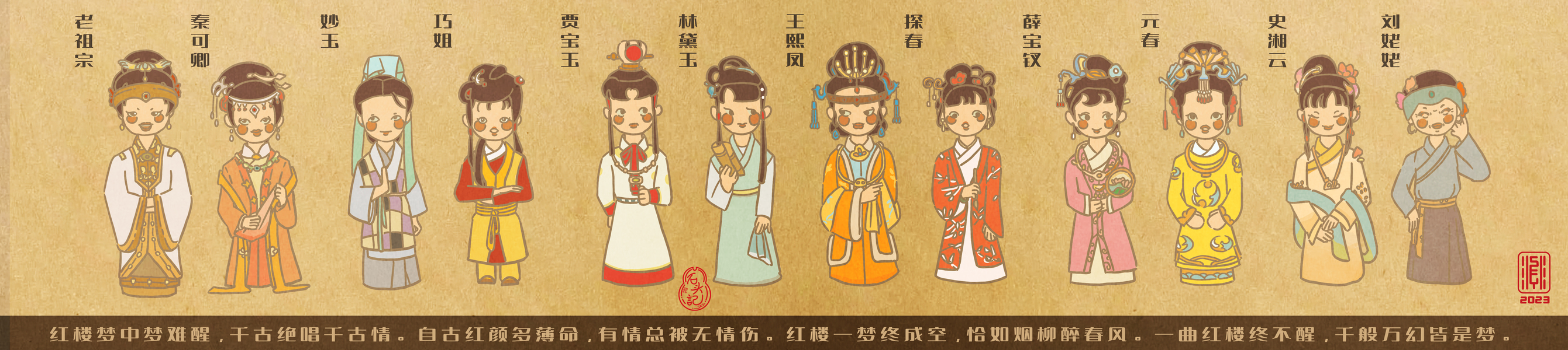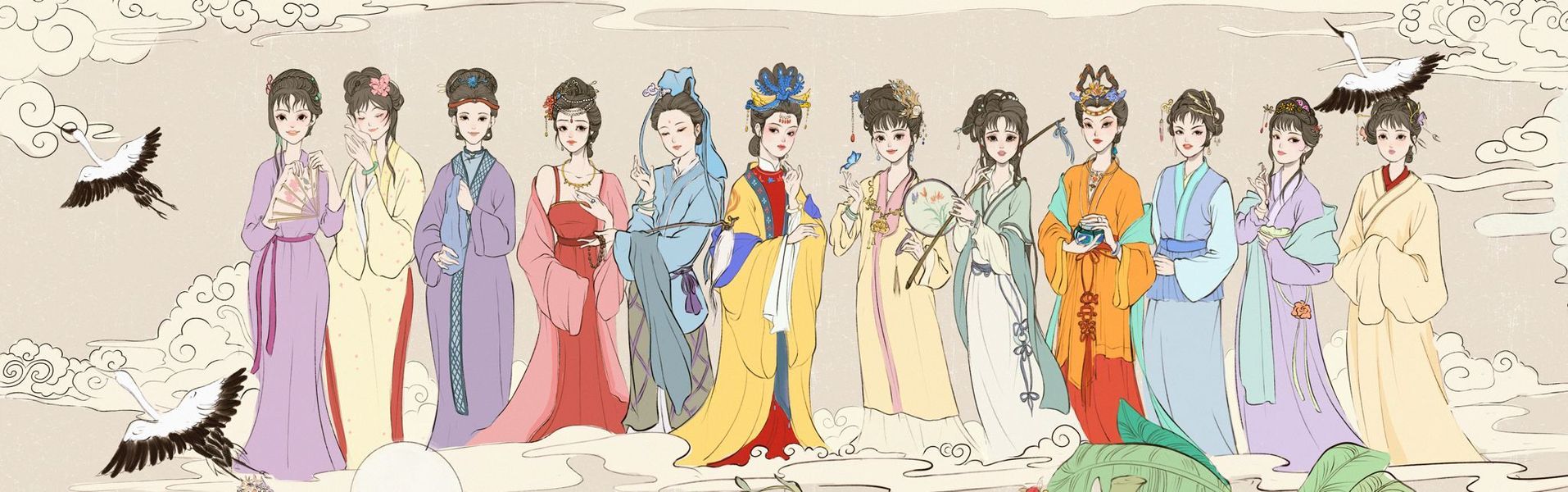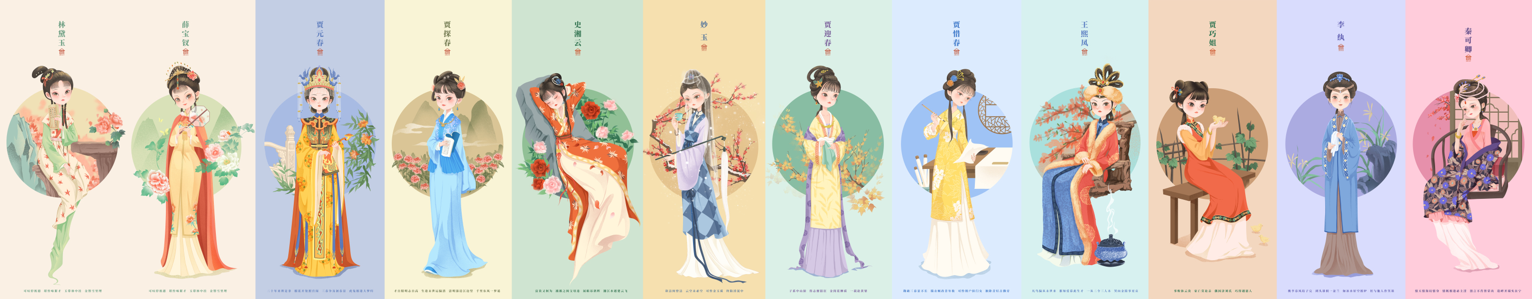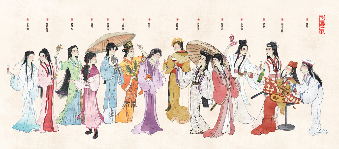 红楼梦群像之金陵十二钗-文创插画