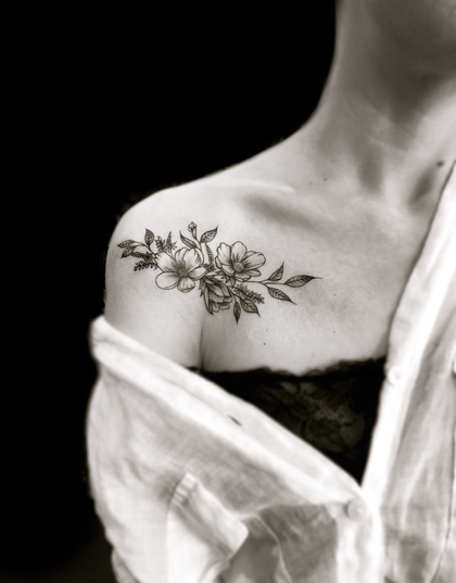 创意性纹身黑灰简约纹身以及植物文身赏析.用掌印