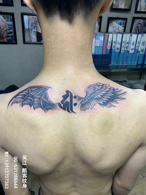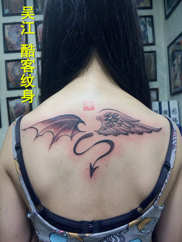翅膀纹身图案#天使与魔兽翅膀纹身#吴江酷客纹身