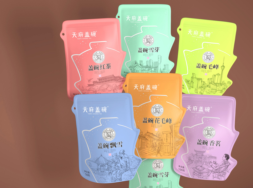 天府盖碗茶丨盖碗坝坝茶丨毛峰-茉莉花茶-绿茶竹叶青