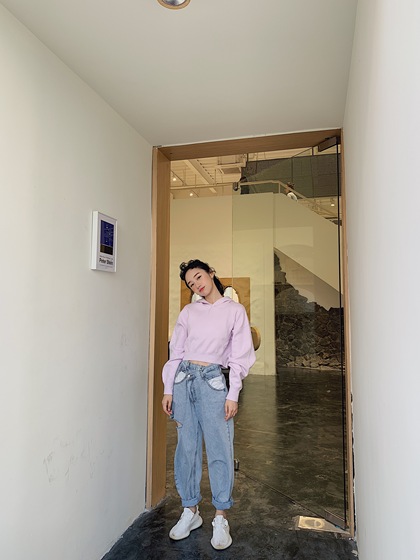 模特段段休闲裤 喇叭裤 牛仔裤 外景拍摄 广州裤子拍摄