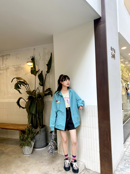 潮牌连帽卫衣纯色卫衣拉链连帽卫衣小清新休闲卫衣