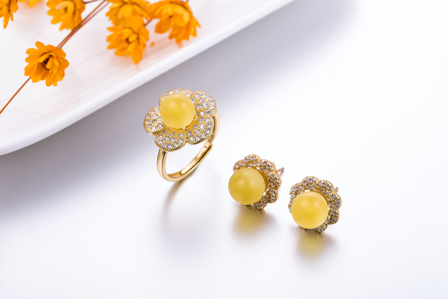 爱盘玩原创-松石贝母蜜蜡耳钉