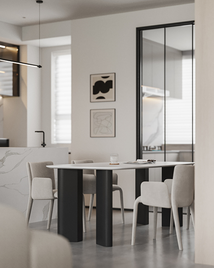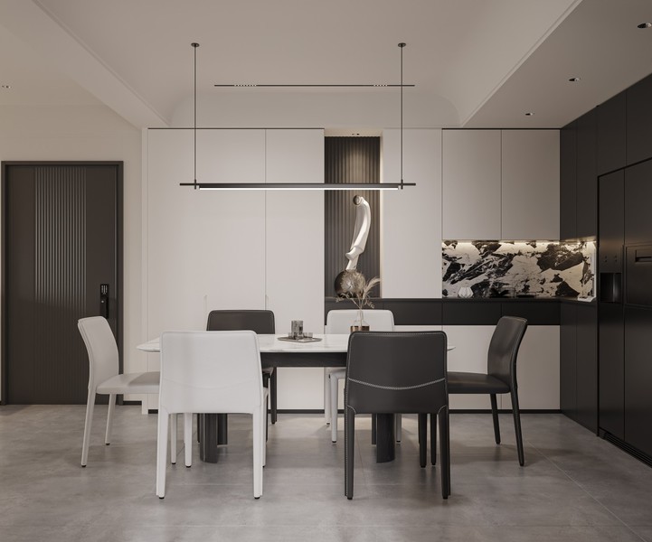 现代黑白灰客餐厅效果图表现