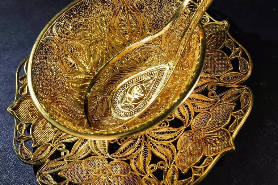 顾客定制的一套 鎏金拉丝工艺