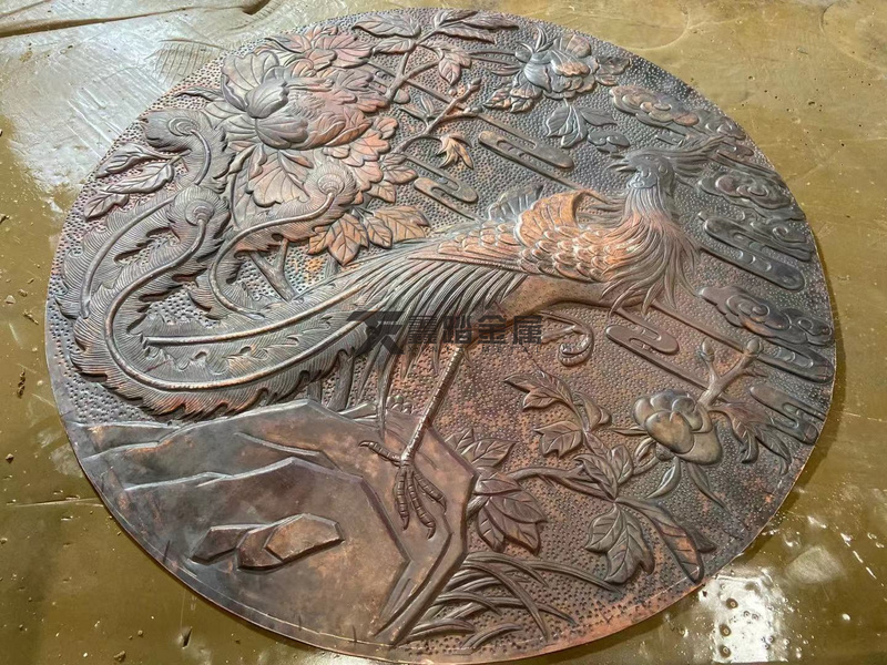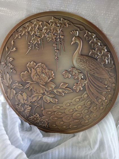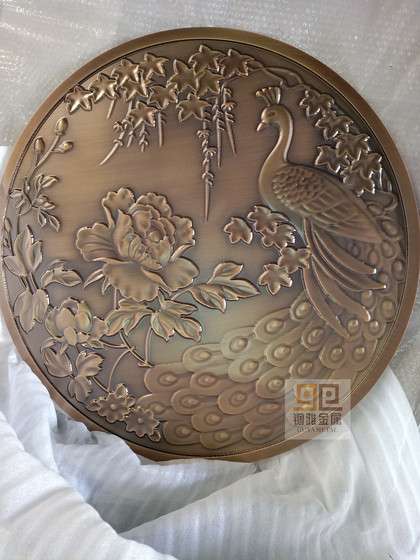 黄古铜铝艺 纯铜经典浮雕“孔雀”装饰壁画 铝雕刻壁画
