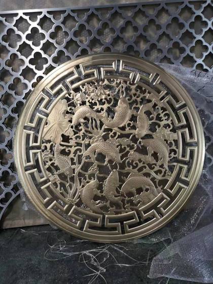 简欧时尚圆形镂空铝艺仿古铜雕花窗花隔断