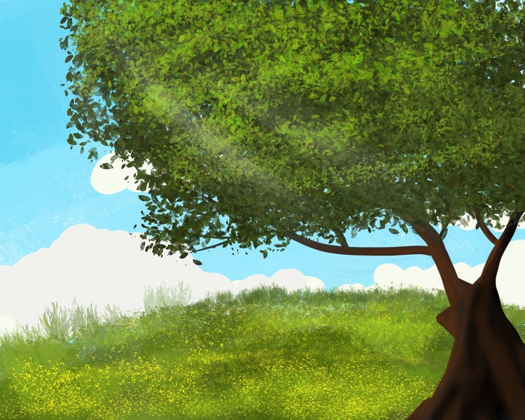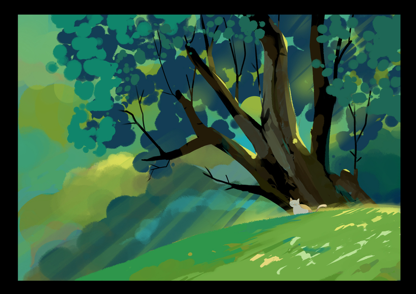 插画-树下的猫咪