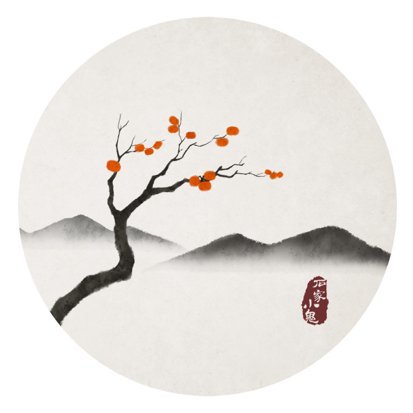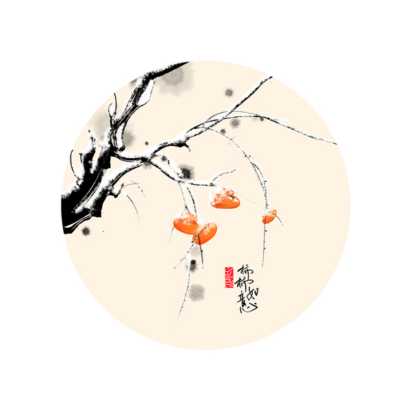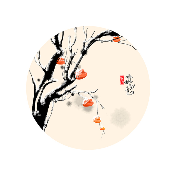 【古诗配图】清霜染柿叶,荒园有佳趣。