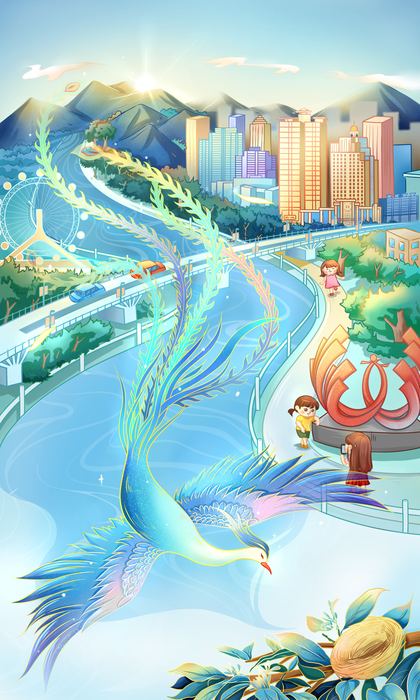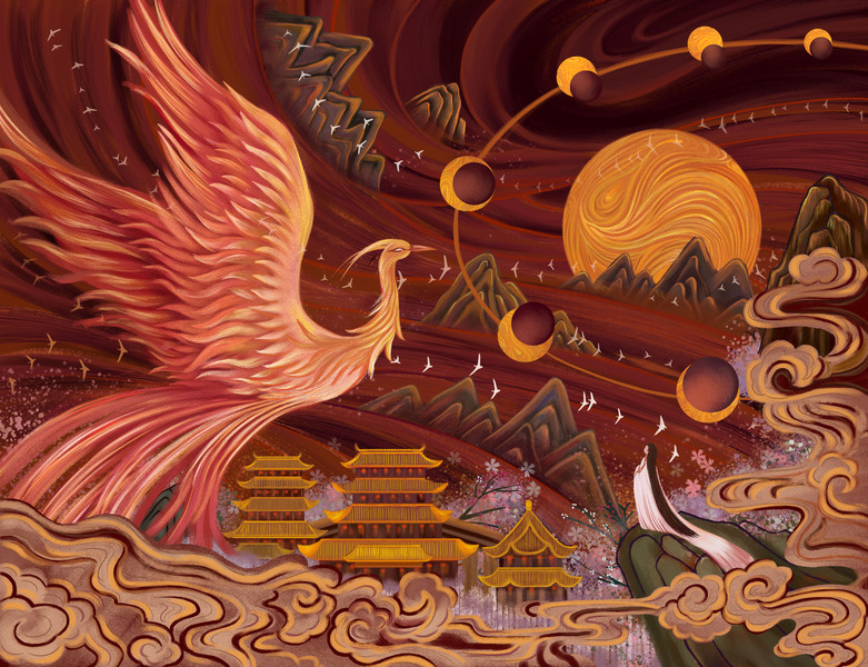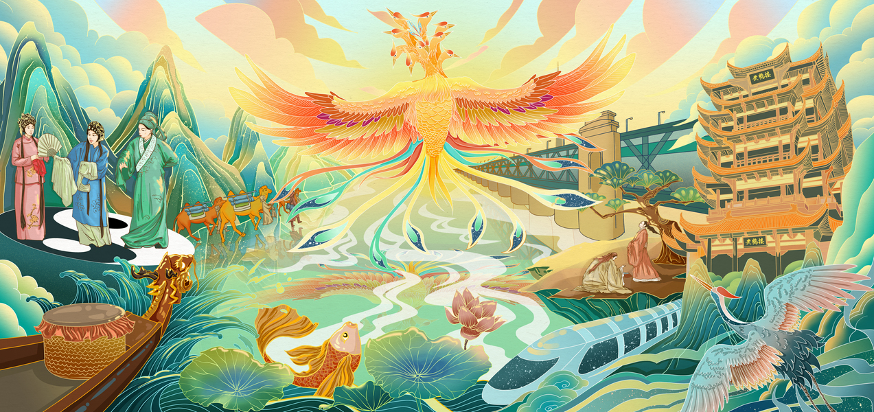 湖北文旅插画《荆楚·九凤》