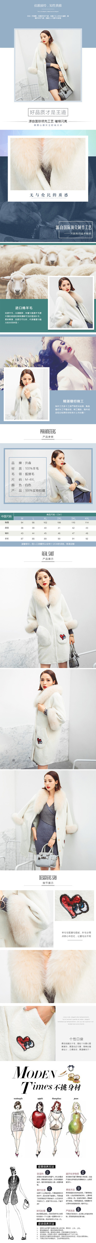 2016新款羊毛大衣详情页 淘宝皮草皮毛一体 清新 冷冽