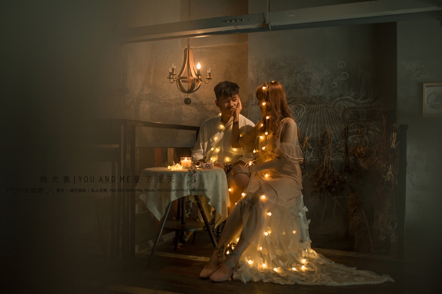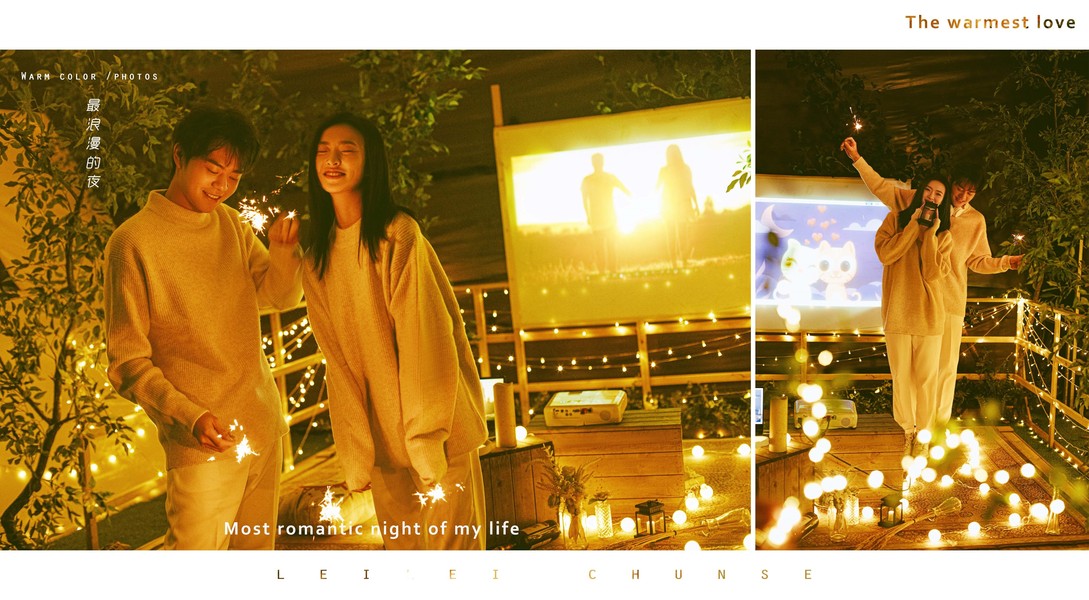 氛围感拉满的海边夜景婚纱照,很难不心动啊~